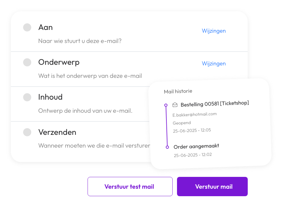 Stuur e-mails naar je gasten! Maak eigen campagnes of stel automatische servicemails in voor of na je evenement, zoals parkeertips of enquêtes. Jij bepaalt!